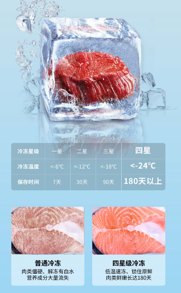 在探索食材保鲜的奥秘中,倍科深刻洞察用户保鲜痛点,针对鱼肉长时间存放可能导致的鲜味流失和营养耗散等问题,冰箱搭载了四星级深冷速冻技术,以-32℃的深冷温度,实现对鱼肉食材的急速冷冻,让细胞中的营养物质快速通过冰晶带,锁住食物的天然水分和营养,纵享纯粹原鲜风味。