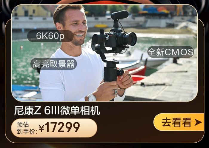 焕新“视”界,焕新成像体验,尼康(Nikon)Z6III微单相机值得拥有。该相机是尼康历史上首款采用部分堆栈式CMOS传感器的全画幅微单数码相机,读取速度比 Z61 快约 3.5 倍;并采用了与尼康Z8、Z9同款的EXPEED 7影像处理器,可通过6K超采样无裁切拍摄4K UHD高清视频,实现长达125分钟的4K 60p 录制,在高质量出片的同时,还可进行专业视频的输出,深受摄影爱好者的喜爱。京东活动价17299元,晒单可享返200元京东E卡、赠收纳袋等优惠。