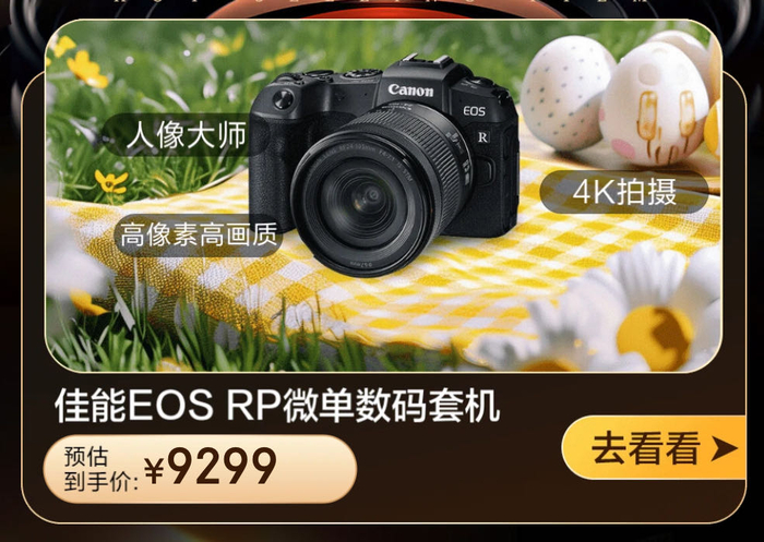 智能美拍、实现靓照轻松拍,怎能少得了全画幅专微相机呢?佳能(Canon)EOS RP 全画幅微单数码相机,拥有小巧轻便的机身与全画幅的动人画质;还具备出色高感、全像素双核自动对焦系统等功能,尤其是在低感光度下,EOS RP仍能够提供出色的细节表现力与干净细腻的画面,在夜晚等昏暗场景下也能拍出清晰的照片效果。京东活动价9299元,晒单至高抽黑神话悟空,并享受赠送EOS 卷边双肩包及64G SD卡等福利,有需要的小伙伴值得冲一波。