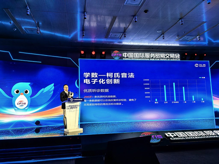 在服贸会成果发布会上,汉王科技副总裁王坤以“AI赋能血压精准测量与智慧管理”为题,分享了汉王以AI技术赋能医疗健康领域,突破柯氏音法电子化的行业空白,实现血压精准测量和便捷管理的创新成果。
