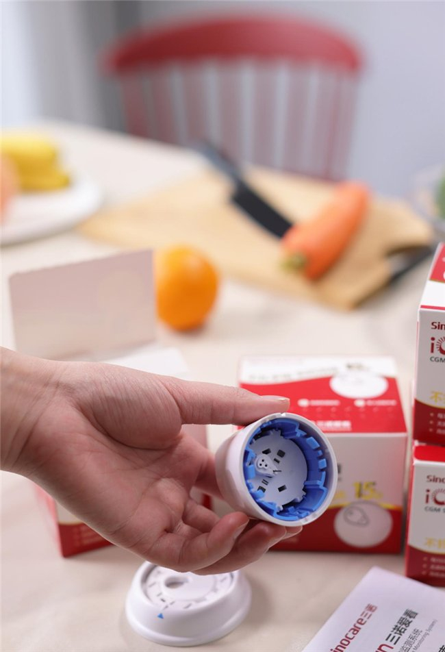 三诺爱看动态血糖仪体积非常小,使用过程也非常简单,无需扎手指,用户只需按照说明书上的步骤,将血糖仪与手机APP进行蓝牙连接,然后按步骤组装后将血糖仪的传感器佩戴在身上即可。三诺爱看也不用调码校准,每一台都经过了出厂校准,用户不必自行校准,拿到后可直接使用。