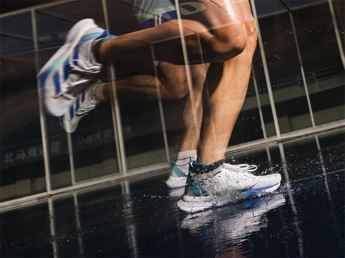 本次“小题大做”专场训练营,阿迪达斯邀请了AR(adidas runners)跑团教练和ARE(adidas runners elite)跑团中的精英跑者以及全马成绩达到“330”以内的跑者朋友们。为此,AR教练定制了一套高强度高配速的训练计划。同时,训练营预设了跑马过程中会遇到的各种情况和复杂路况,利用装置营造出多样化的跑马环境:用喷淋系统模拟雨天的湿滑路面;设置起伏路段贴近赛道爬升;跑道边还设有补水站,锻炼跑者们的补水节奏。通过这些“小题大做”、细致入微的环境模拟,让跑者们从细节见真章。