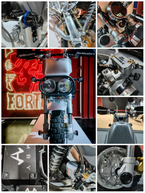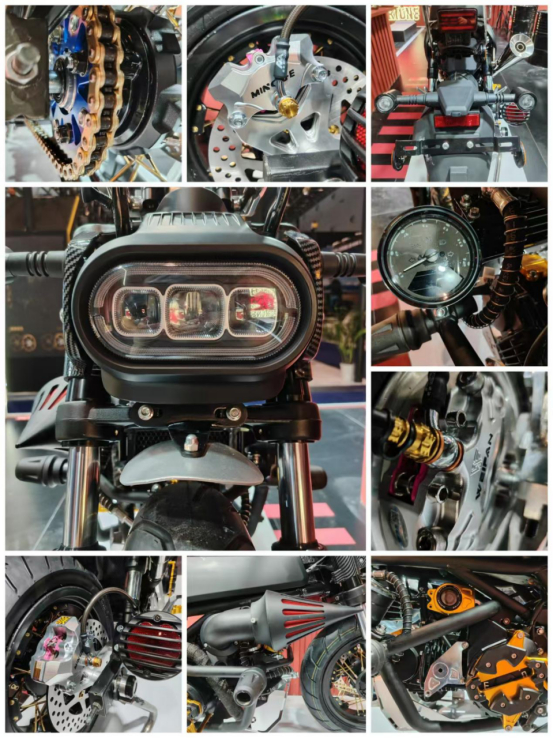 在MBY城市旅行展区,一抹冰雪绿撩人心魄,令人惊叹这种大胆的色系搭配,这是MBY全新的电动版“维塔斯”,以特立独行的配色和改装方案惊艳全场,这台提供了可以匹敌600CC油车排量的电动复古机车,可以轻松完成318、丙查查、新藏线的穿越。