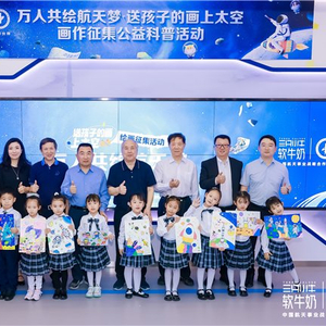 5月12日,三只小牛联合中国航天基金会举行“万人共绘航天梦——送孩子的画上太空”公益科普活动启动仪式,钱学森之子、上海交通大学钱学森图书馆馆长钱永刚,原国家首批航天员兼航天员教练吴杰,中国航天基金会理事长吴志坚以及蒙牛集团相关部门负责人等领导和嘉宾出席,并殷切寄语激励孩子们从更广阔的视角去看待航天探索。