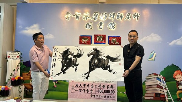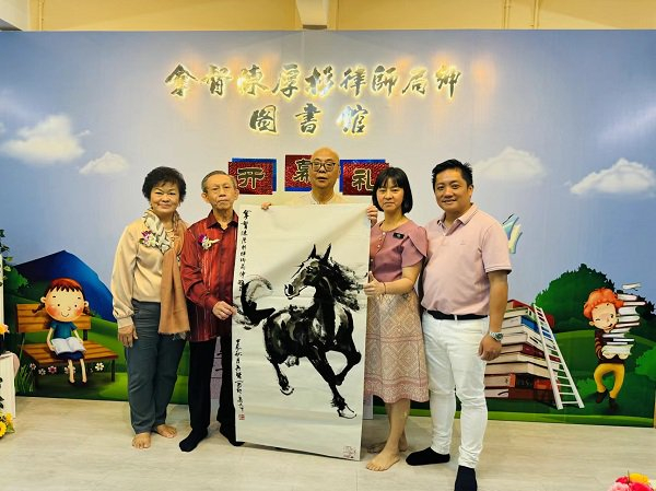 中国画马名家吴曙一行,墨宝捐赠点亮马六甲中国公学图书馆开幕式