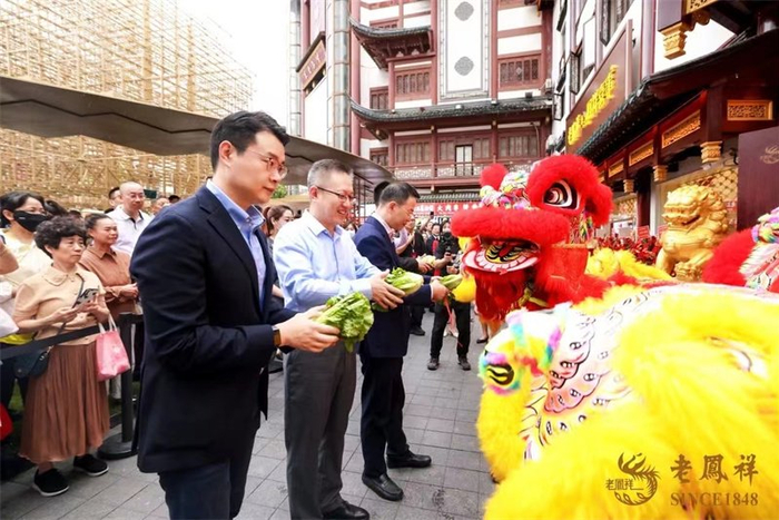黄浦区商务委主任邱文,豫园街道党工委书记邵泉,黄浦区商务委副主任项觉,老凤祥股份有限公司党委书记、董事长杨奕,总经理黄骅以及老凤祥股份有限公司、上海老凤祥有限公司的相关负责人同接喜气。