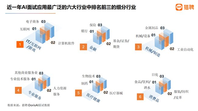 1)AI面试应用最广泛的行业:互联网、金融、机械制造居前三