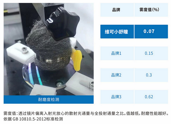 除了功能强大外,“锆石锐金”膜也是维可小舒瞳一大亮点,采用顶级进口材料及纳米镀膜技术,维可医疗把用于军工,电子类光学产品的材料转用于镜片膜层,镜片底层采用primer,加强镜片膜层结构的牢固度,使膜层不易脱膜。进口加硬液结合在primer上,使镜片表层硬度大幅度提升。改变传统的镜片镀膜材料和工艺,运用最新的薄膜纳米成型技术,对镜片进行18层高真空镀膜处理,显著增加镜片表面耐磨度,同时使镜片透过率、防水性、防油性、抗辐射、抗紫外线等性能得到根本性提升。雾度值仅为0.07%(国家标准<0.8%即为合格)极大的延长镜片使用周期,保证孩子佩戴的效果,为家长节约复购的经济成本。