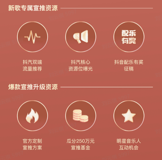 另一方面,潜力音乐人也能够通过看见音乐计划进一步施展自己的才华,获得高效成长,打开上升通路。新歌上线后,音乐人发布原创视频打歌,将会获得官方流量加热,参与抖音演出直通车,携爆款代表作登上线下演出舞台、获得乐评人倾情推荐及年终盛典荣誉表彰,解锁经济签约以及商业代言等更多机会。