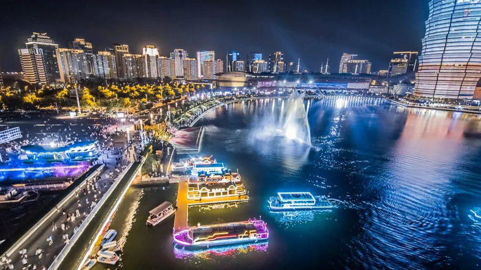 由河南郑东建投集团所属的河南新发展文旅集团投资打造的如意·龙湖城市水上夜游8月2日正式启航,是郑州首个城市水上夜游项目,夜游以河南历史文化为脉络,通过游船体验、光影演绎、桥体亮化、两岸文商旅空间提升,打造出“水+岸”互动的城市文商旅新场景。游客们可以乘坐“豫见青铜”“文人丹青”“豫曲风华”等不同时代主题的游船,通过天地之中、黄帝故里、功夫郑州、大河奔涌和寰宇同辉五个篇章,在光影陆离间穿越五千年。