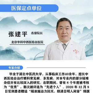 张建平,北京华科中西医结合医院眼科主任,毕业于湖北中医药大学,从事临床工作40余年,擅长中西医结合治疗眼科常见病、多发病,对本专业内的部分疑难杂症亦有比较深入的研究。