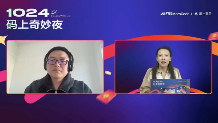 10月24日,豆包MarsCode 与稀土掘金社区携手举办了“1024码上奇妙夜”直播活动。本次直播共同探讨了 AI 如何在不同阶段助力个人成长与职业发展,以及 AI 技术未来的发展趋势。同时,在1024这个属于开发者的节日里,豆包MarsCode 也为广大开发者带来一份厚礼,发布全新的 AI 刷题、AI 练中学等功能,无论你是新手程序员,还是经验丰富的开发者,都能在学习和开发过程中体验到豆包MarsCode 带来的助力和效率提升。