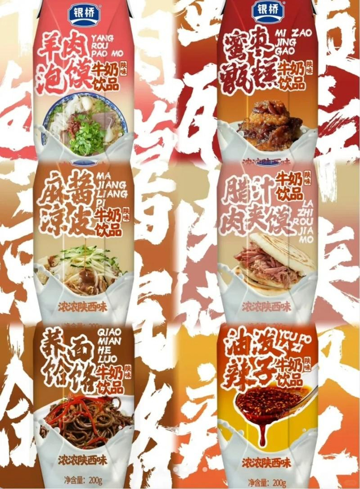 羊肉泡馍牛奶、麻酱凉皮牛奶,腊汁肉夹馍牛奶......饶是品尝过蜜雪糯糯柠檬茶的我也不禁对这些口味心生敬意。