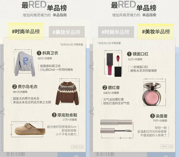 小红书首次推出时尚美妆类榜单,演绎2024冬季流行趋势