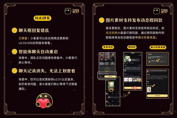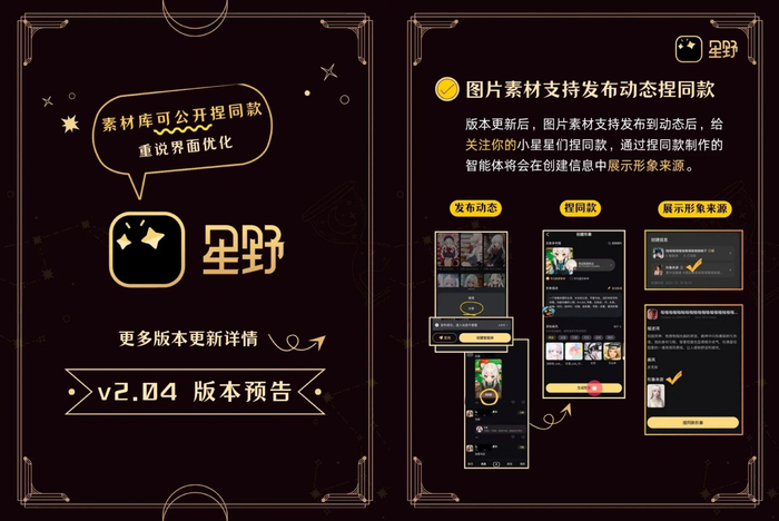 星野APP2.04版本:素材库可支持公开捏同款、重说界面优化