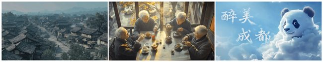 在众多获奖作品中,这部《醉美成都》是为数不多的由个人独立完成的作品,创作者“AIGC今夕何夕”在国庆假期的前三天构思剧本和文案,后四天边剪辑边即兴创作,最终在10月7日晚上完成并提交了作品。从一开始对剧本的犹豫,到后来AI的随机性和背景音乐的律动感给“AIGC今夕何夕”带来了很多创作灵感,短短七天时间交出了最终的答卷。成都,这座千年古城,既有川西巷道的悠然,也有繁华都市的活力。这部获奖作品前半部分静谧,后半部分热闹、充满烟火气,让观众在静谧与热闹之间穿梭,并且把成都的蜀地历史、热辣美食、熊猫标志等特色元素一一呈现,充分地表现出这座城市的多元包容、巴蜀文化的别样魅力。正如短片的最后一句文案所诉说的:“成都不仅是一个地点,它是一种生活,一种态度,一种永不褪色的传奇。”