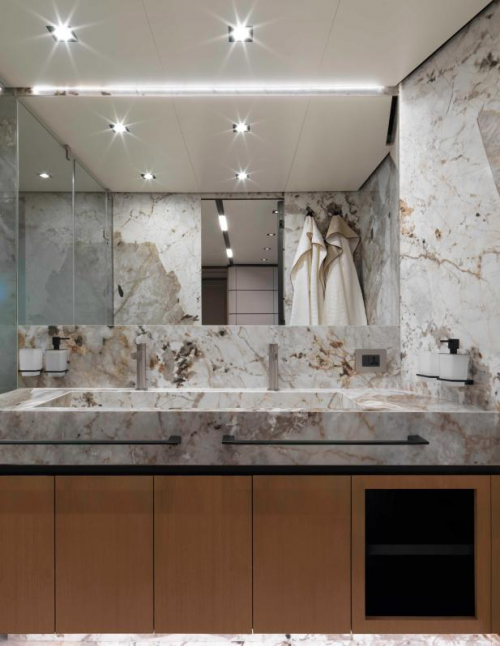 无论是宜居性还是装潢品质,她的多重独特性来自于大胆美学和简单优雅的巧妙融合,外加对空间的细致关注。该艇内装出自大名鼎鼎的Loro Piana Interiors,该品牌素以精湛的手工艺和卓越选材而闻名,因此毫无意外被选为这艘未来派游艇的合作伙伴。创新方案层出不穷,无数设计挑战被一一攻克,每处细节都令人惊叹。