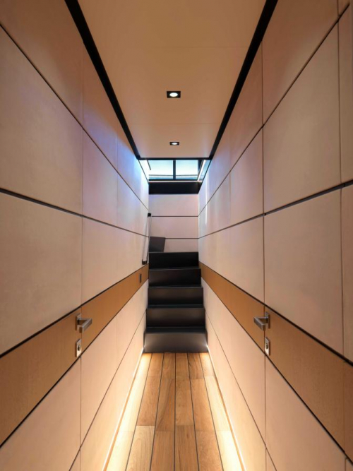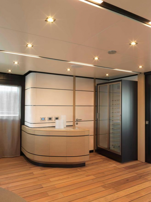 在众多令人惊叹的建筑特征中,上层甲板的未来派玻璃窗和碳纤维穹顶必定引人注目,而连通三层甲板的一体式层压碳纤维楼梯同样也不遑多让,在免除舱壁和支撑结构外,还创造了一个足有61平方米的超大开放式起居空间。