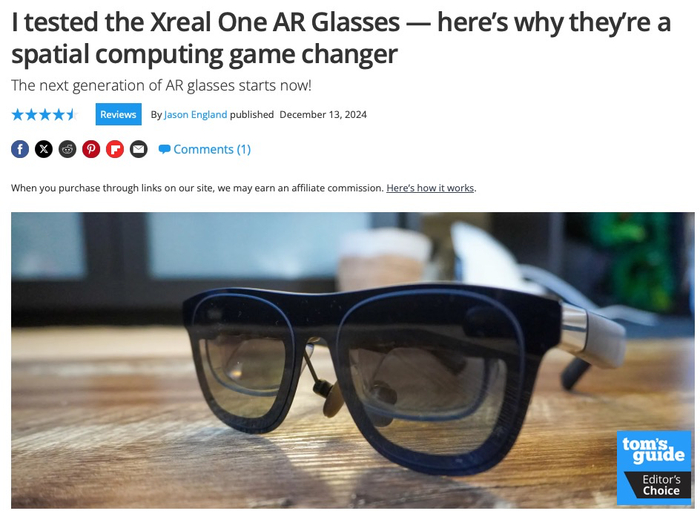 XREAL One不仅在销量上表现突出,其技术性能和产品表现也赢得了全球权威媒体的好评。