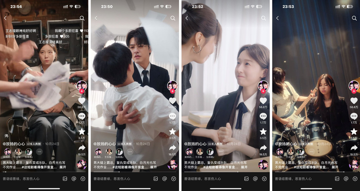 除了阵容扎实,TVC的创意同样精彩。这部TVC基于短剧的叙事结构找到了新的与观众对话的方式——以导演失误将旗下演员送错片场为开头,通过“霸总剧的女主是清澈愚蠢的男大学生”“复仇爽剧的复仇对象是叛逆的摇滚少女”“青春校园白月光成霸道女总裁”等一系列“离谱操作”,将大众喜闻乐见的霸总、甜宠、爱情、复仇等题材交叉融合重新烩制,带给用户“眼前一亮又一亮”的感觉,用户也惊呼“多厨狂喜”。