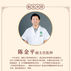 陈金平:副主任医师,国医大师李佃贵的弟子,药安堂智慧中医副院长,同时也是中国民间中医医药研究开发协会浊毒理论研究分会第二届理事会理事以及中国中医药信息学会科学普及分会理事。