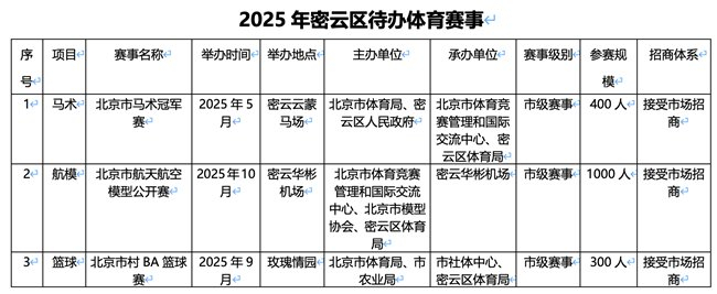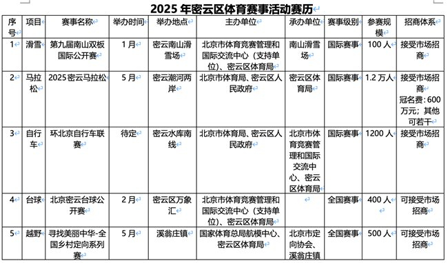 在赛历发布的同时,赛事各项招商工作也将全面启动,密云区体育局将根据赛事特点及规模为各参与企业制定个性化权益回报,携手开启体育赛事与商业合作的新篇章。