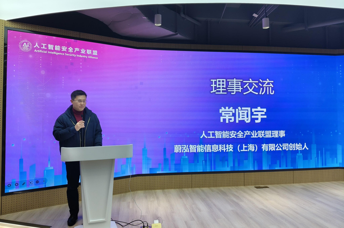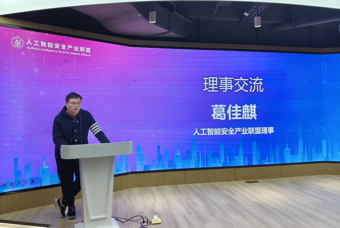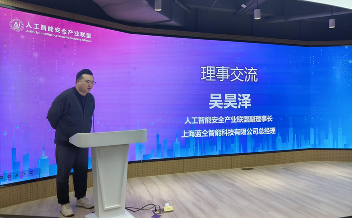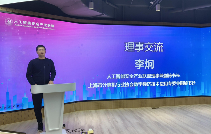 在理事交流环节,吴昊泽、张雷灏等副理事长,王文涛、李炯、范晔、金宣含、皇甫秉京、常闻宇、葛佳麒、鲍晓南等理事一一上台,从各自的行业领域出发,对人工智能安全产业联盟发展提出了设想和建议,理事们的真知灼见为联盟建设和运营提供了方向和路径。