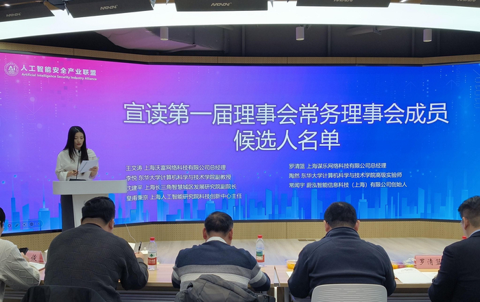 2025年1月15日,人工智能安全产业联盟(AISIA安侠联盟)一届一次理事会会议在上海数智体验馆召开。本次会议标志着人工智能安全产业联盟(AISIA安侠联盟)理事会正式成立,将坚持“以人为本”理念和“智能向善”的宗旨,以促进人工智能可审核、可监督、可追溯、可信赖为目标,推动人工智能安全技术在重点行业、领域的应用,实现人工智能安全产业化、生态化、规模化高质量发展。