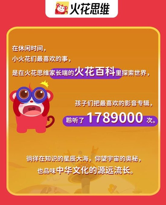 在课程服务板块,火花思维迎来逻辑思维课程内容全面更新、火花思维家长端APP升级、系列图书《幼小衔接60天高效规划》等上线、首款思维益智类桌游《火柴棒练思维》推出等品牌事件。其中,火花思维家长端的火花百科系列节目深受孩子们喜爱,累计播放量达 1789000 次。