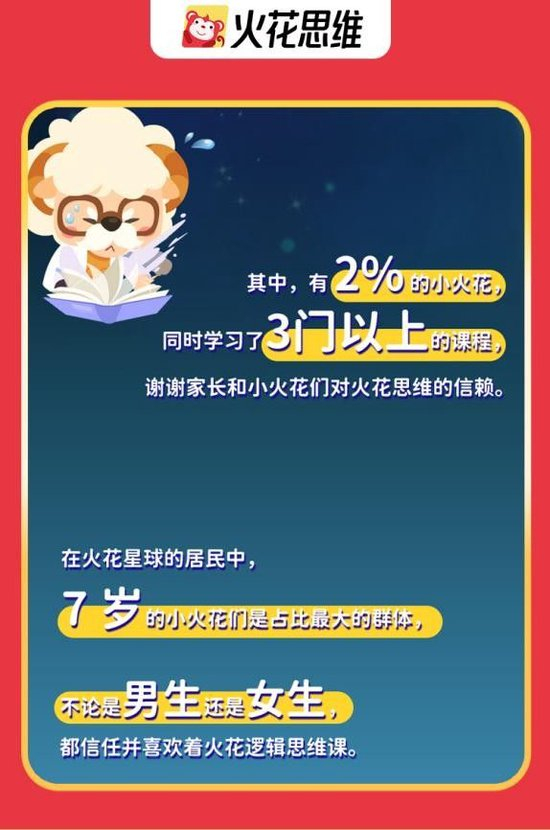 近日,专注于青少年逻辑思维教育领域的火花思维发布《2024火花思维年度用户报告》(下称“报告”),对外公布了火花思维2024年课程及用户数据。