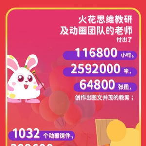 火花思维贯彻“寓教于乐”的教育方式。报告显示,本年度火花思维教研及动画团队的老师付出了116800 小时,产出了2592000 字、64800 张图,创作出图文并茂的教案;绘制1032 个动画课件,309600 张场景原画,构建出兼具互动性和趣味性的学习课件,帮助孩子学会思考,养成终身学习的习惯。