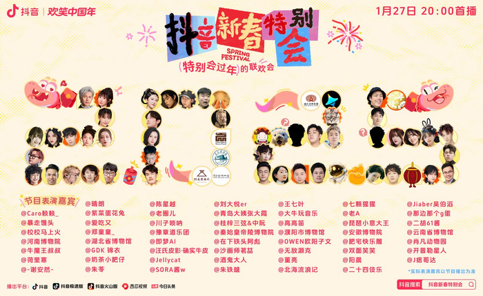 抖音新春特别会阵容释出, 节目看点抢先预览