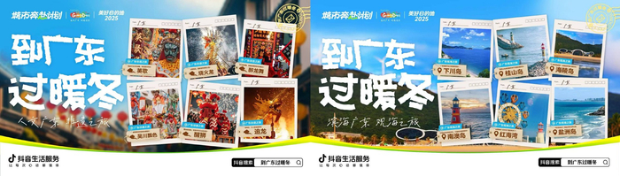 这一次,为了让更多用户沉浸式感受岭南风韵,满足不同人的暖冬旅行期待。广东文旅联合抖音生活服务,整合广东地区21地市的丰富资源,融合美食、温泉、海景、非遗等元素,推出了“人文广东”“滨海广东”“好吃广东”“养生广东”共4个不同主题的暖冬之旅路线,让来到广东的人们,随时随地都能轻松开逛,找到在广东过暖冬的快乐点:
