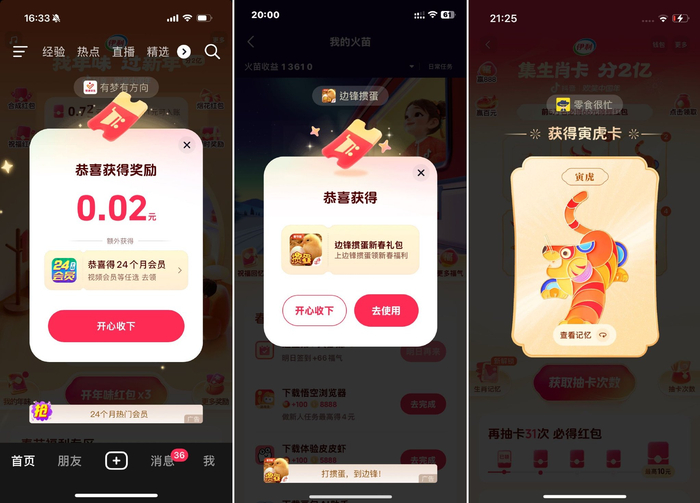 集福、返乡、生肖、聚会、发红包......不难看出,此次活动聚焦的都是与用户密切相关的春节高频习俗场景,涵盖社交场与氛围场,联动线上与线下。借助这些丰富多元的场景,“欢笑中国年”成功吸引了对不同春节习俗感兴趣的用户,有效提升了人群覆盖,成为今年春节期间备受瞩目的红包活动。