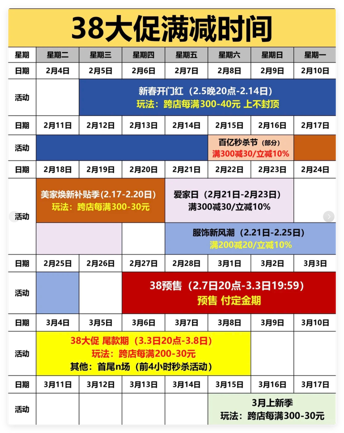 2025淘宝天猫38节活动时间是几号开始?今年京东三八节什么时候开始?
