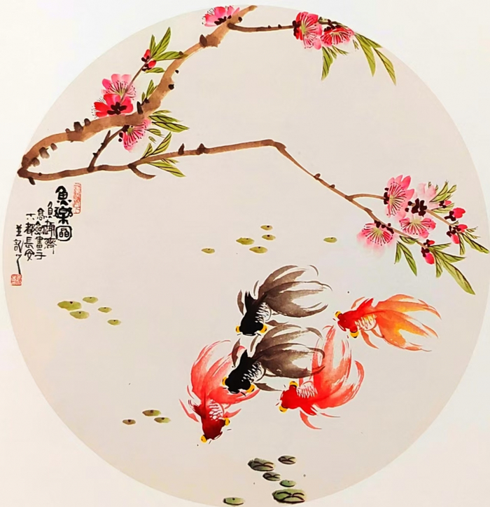 高剑的国画作品,无论是金鱼还是花鸟,都展现出一种独特的艺术魅力。他的金鱼生机盎然,笔墨成趣,善于运用水墨的深浅远近,墨卷波涛、笔缩云烟,将诗意融入画中,给人以深厚的艺术享受。而他的花鸟画则细腻生动,极富神韵,善于捕捉自然中的灵动之美,将花鸟的生机与活力展现得淋漓尽致。