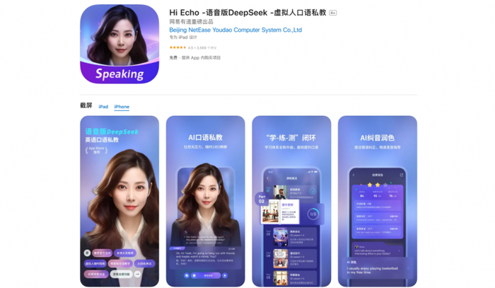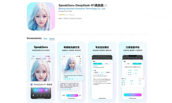 全球首个DeepSeek-R1满血版的AI口语陪练:搭载深度求索(DeepSeek)最新语言大模型,实现类人类逻辑对话能力,话题延展深度超越95%真人外教,单次对话可持续1小时无重复。