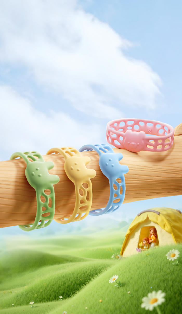 在安全认证方面,产品已通过植物精油A级效果测试报告、不含避蚊胺检测以及RoHS安全检测,强大的产品背书为宝宝健康保驾护航。环身采用婴儿奶嘴级食品硅胶材质,温和贴合儿童娇嫩肌肤,无化学添加,母婴及敏感肌人群均可安心使用。