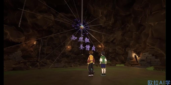如在讲解三年级课程“认识毫米”这一知识点时,欧拉的教研老师就借鉴了经典名著《西游记》中 “盘丝洞”的设定,做出了“知道蛛丝的粗度,就能将师父平安救出”的剧情。小健和磊磊组成的师兄弟组合只要回答出:“蛛丝的粗度为3__?”这一问题,便能完成任务。兄弟俩通过测量悟空“毫毛”的方式, 顺势将“毫米”这个概念引出,成功救出小欧师父。