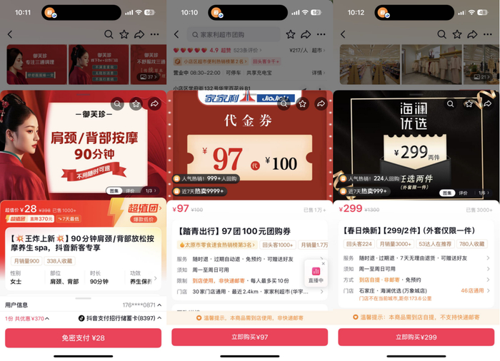 活动期间打开抖音搜索「焕新季」,在主会场就能领取跨店通用的兑换券,无论是美甲美睫、健身SPA还是商超购物,一券在手可在全城合作门店使用。不知道怎么买最划算?跟着爆品清单抄作业,春季购物最低3折就能入手心仪好物。
