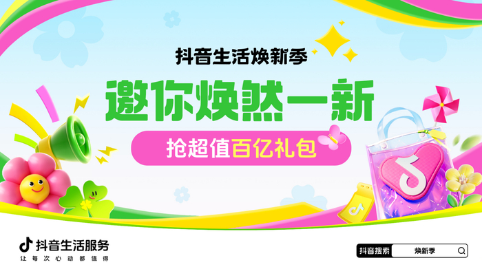 这个春天,抖音生活服务为你准备了专属的焕新攻略!3月5日至30日上线的「焕新季」活动,为生活加点新意。联合商场购物、美容美体、本地生活等领域的头部商家,围绕"衣焕新、物焕新、人焕新"三大场景,打造线上线下联动的春日消费体验。