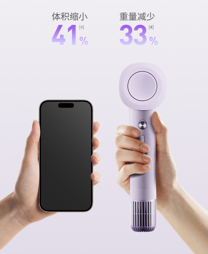 开启 AI 恒温模式下,AI 迷你吹风机可智能调温,时刻保持头皮处于 50℃ 黄金保护线[1],远离热损伤,帮助更好呵护头皮屏障。创新采用 Mini 机身,比科西一代吹风机缩小 41%[2],带来焕然一新的智能便携体验。