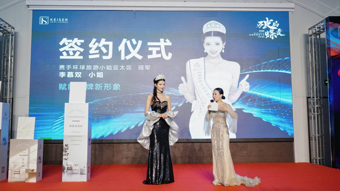 2025年4月15日,浙江温州——在"破局·蝶变"凯瑟2025年度经销商战略会议上,艺术涂料品牌凯瑟(KEISER)正式完成品牌形象迭代升级,官宣第31届全球城市旅游小姐中国区总冠军、环球旅游小姐亚太冠军李慕双女士成为品牌全球代言人。此次签约标志着凯瑟在中国市场进入"艺术化、国际化、高端化"发展的新阶段。