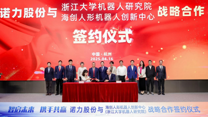 2025年4月16日下午,诺力股份与浙江大学机器人研究院海创人形机器人创新中心在AI之城——杭州举行战略合作签约仪式。