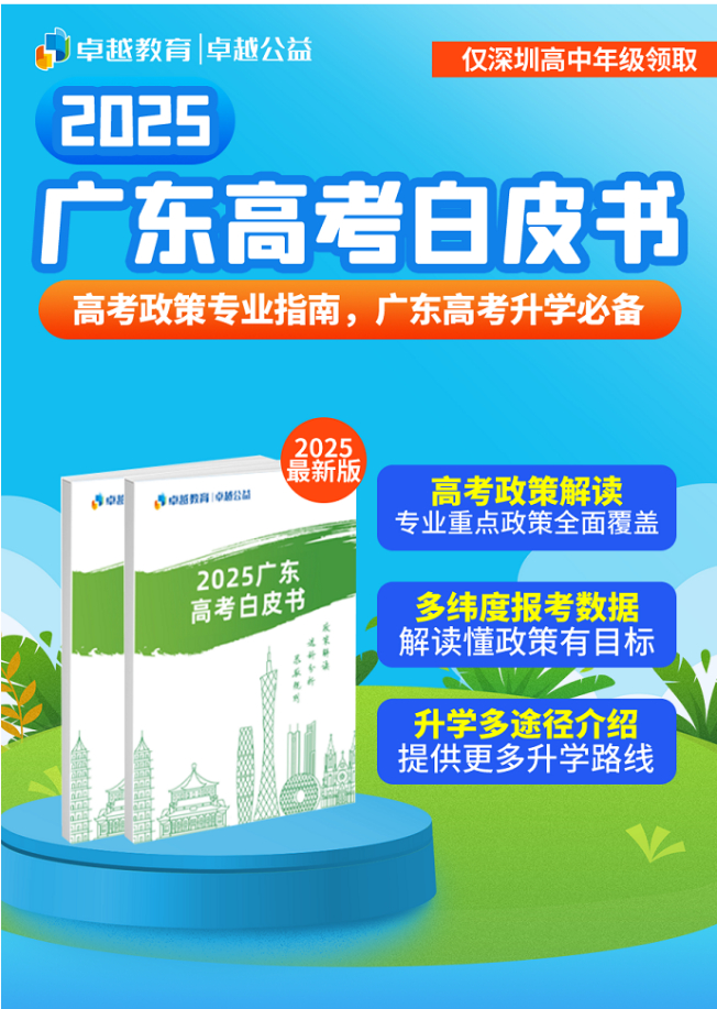 政策是升学赛道的“隐形规则”,读懂政策方能运筹帷幄。卓越教育联合资深教研团队编写的《2025深圳中考白皮书》《2025广东高考白皮书》,以专业视角解构政策脉络,被誉为“家长必备的升学百科全书”。