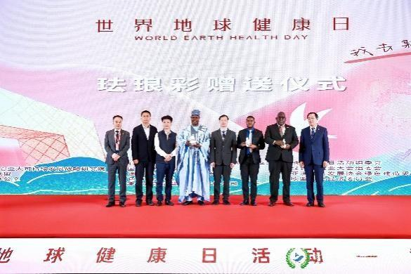 本次活动不仅是全球智慧的汇聚,更是行动力的彰显。邦得科技控股集团、湖南省约伯能源科技有限公司为“我去新疆栽棵树”公益项目贡献力量。北京政合宫文化发展有限公司品牌创始人孙赫阳向赞比亚驻华副大使Alfred Sililo、尼日利亚驻华大使瓦基勒(Wakil)及安哥拉驻华大使Dalva Mauricia Calombo Ringote Allen赠予象征生态和谐的珐琅彩艺术品,传递东方文化中的“天人合一”理念。