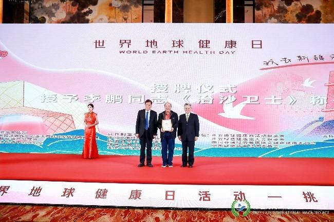 本次活动授予李鹏“治沙卫士”称号,以表彰其对新疆荒漠化治理的贡献。李鹏用十六年的时间开垦出3000亩林果园,种下5万余株防风林、80余万株特色林果,不仅阻挡了风沙,也托起了脱贫攻坚的希望。