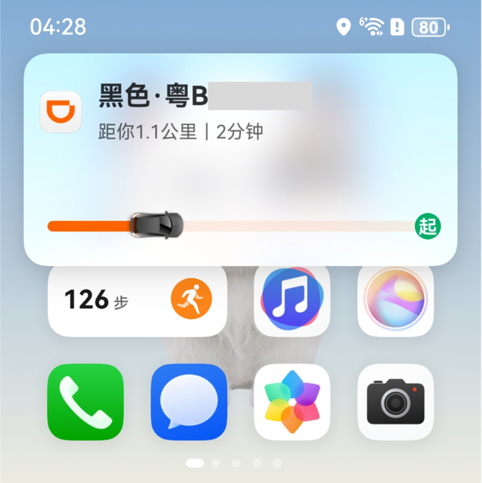 •实况窗实时查看动态:通过实况窗功能,用户无需频繁打开滴滴出行App,在锁屏,通知栏、状态栏甚至是折叠屏手机的外屏等位置等就可以查看实时出行动态信息,像车辆的颜色、车牌号、距离、预计到达时间等重要信息可以一目了然。