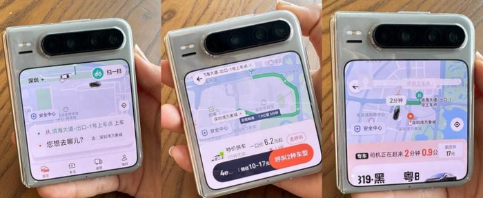 鸿蒙版滴滴出行还对华为Pura X进行了深度适配,用户无需展开手机,在外屏上就可以选择车型、发起订单、查看路程和剩余时间等关键信息。展开Pura X内屏,更可体验完整版功能界面,查看更多行程详情。