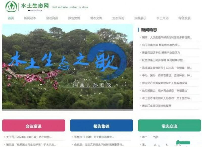 3、水土生态理论创始人孙发政先生创建《水土生态网》,宣传水土生态思想,保护地球人类家园。网站设8个栏目:新闻动态、会议资讯、报告集锦、常态交流、生态评论、实践展示、水土文化、绿色发展。